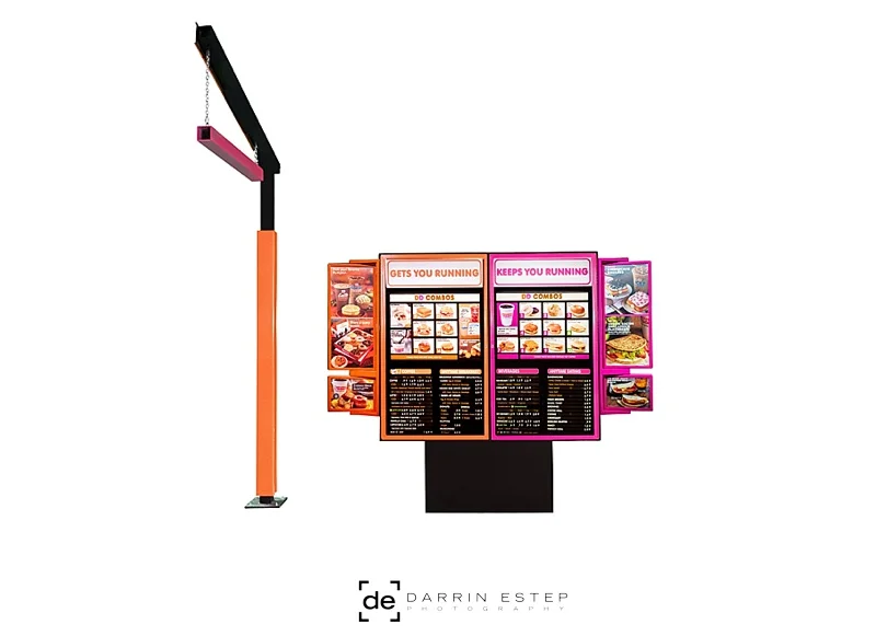 I love when new challenges come my way.  A couple months ago, I stopped by the offices of VGS (Visual Graphic Systems) to provide a quote to photograph a set of drive-thru systems.  There were four separate "systems" in place that each have components that can be swapped out for advertising purposes.  VGS has their systems in a warehouse, which is great for shooting indoor however, it presents its own set of challenges with mixed lighting, reflection and framing the objects with enough contrast that they can be cut-out and delivered as a Photoshop layer.